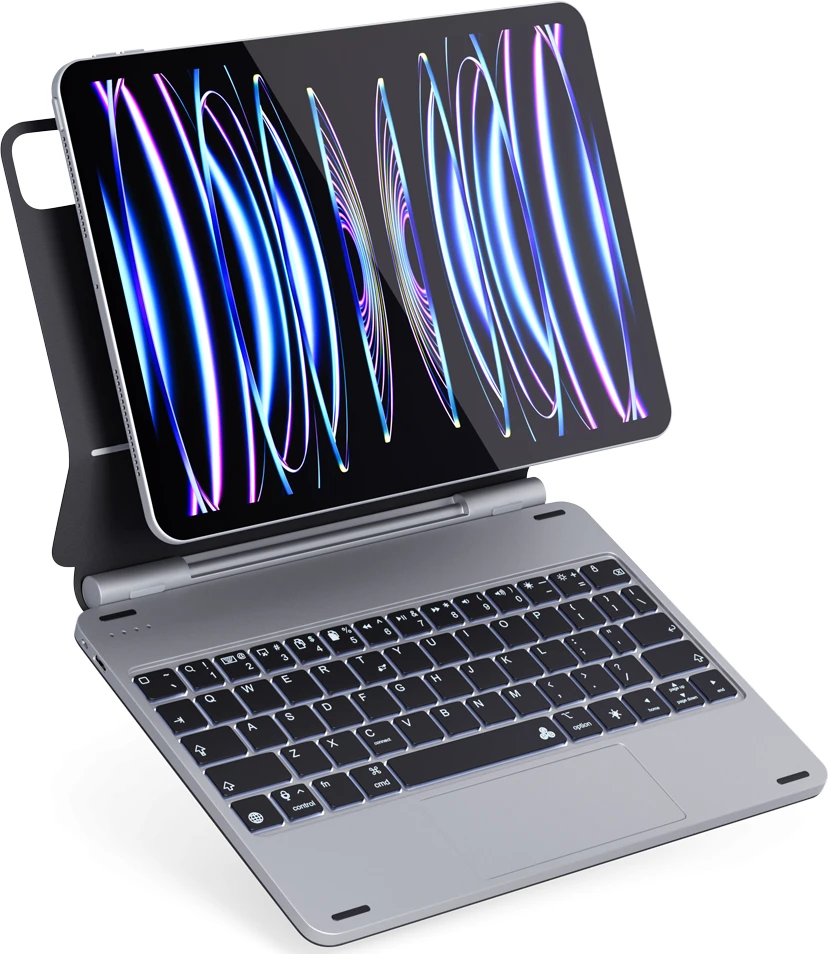 Epico Aluminium Keyboard Case ist das perfekte Zubehör für Ihr iPad, das sich kabellos über Bluetooth verbinden lässt. Die Hülle ist aus einem Alu-Gehäuse und PU-Leder gefertigt und bietet zuverlässigen Halt für Ihr Tablet. Die Hülle dient auch als Ständer, der Ihr iPad im idealen Winkel hält, so dass Sie ihn als Monitor verwenden können. Das Multi-Touch-Trackpad, das auf das Antippen auf der gesamten Oberfläche reagiert, erleichtert die Bedienung. Die hintergrundbeleuchtete Tastatur verfügt über sieben Farben mit einstellbarer Helligkeit und zahlreiche Tastenkürzel, wie z. B. die Tasten zum Kopieren/Einfügen. Die Tastatur hat eine lange Akkulaufzeit (bis zu 3 Monate im Standby-Modus) und lässt sich separat aufladen. Im Lieferumfang enthalten ist ein USB-C auf USB-C-Kabel.